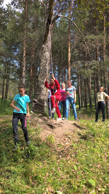 костер нам помогли наши замечательные родители, а ребята строили шалаши, занимались скалолазанием, прыгали на тарзанке, играли в футбол,