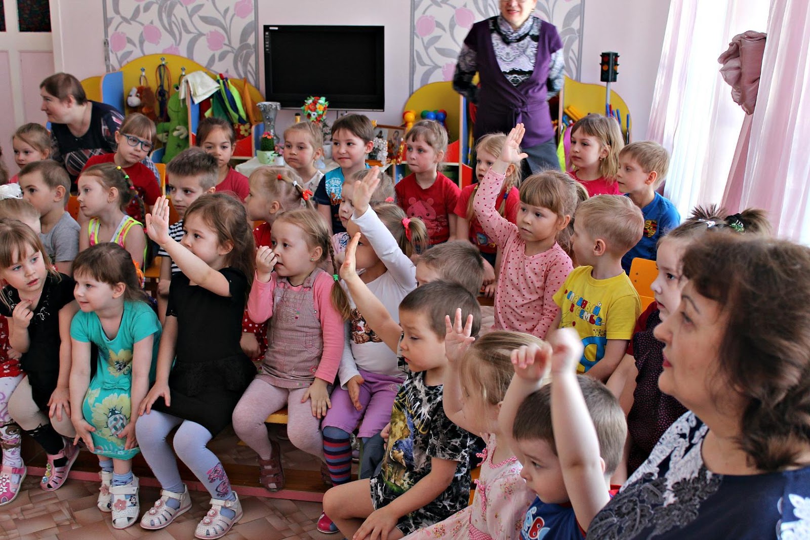 Маленькие детки с большим удовольствием и вниманием слушали в их исполнении